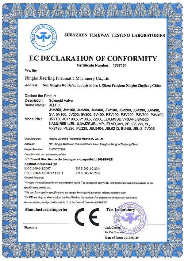 저장성 닝보시 시커우 공압 산업 단지 싱자 로드 1호, 우편번호: 315502(No 1.Xingjia Road, Pneumatic industrial park, Xikou,Ningbo, Zhejiang Zip code 315502)