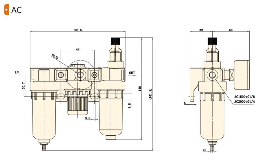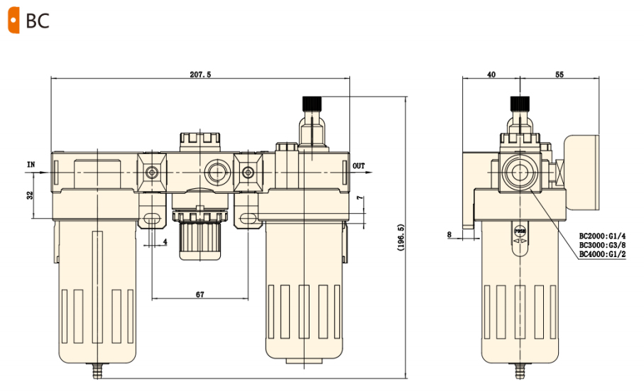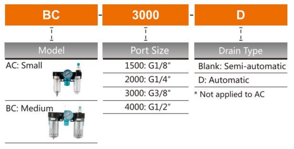 | 구성 요소 | 필터 레귤레이터 | AF1500 | AF2000 | BF2000 | BF3000 | BF4000 |