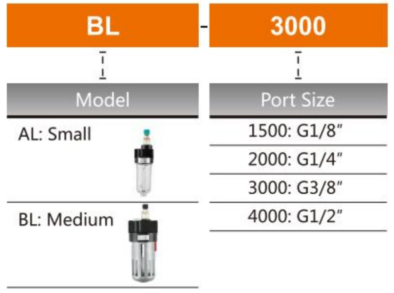 | 포트 크기 | G1/8 " | G1/4 " | G1/4 " | G3/8 " | G1/2 " | |