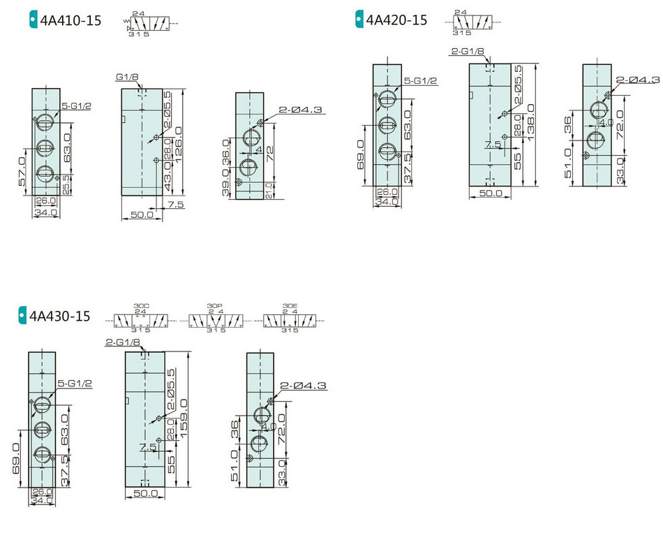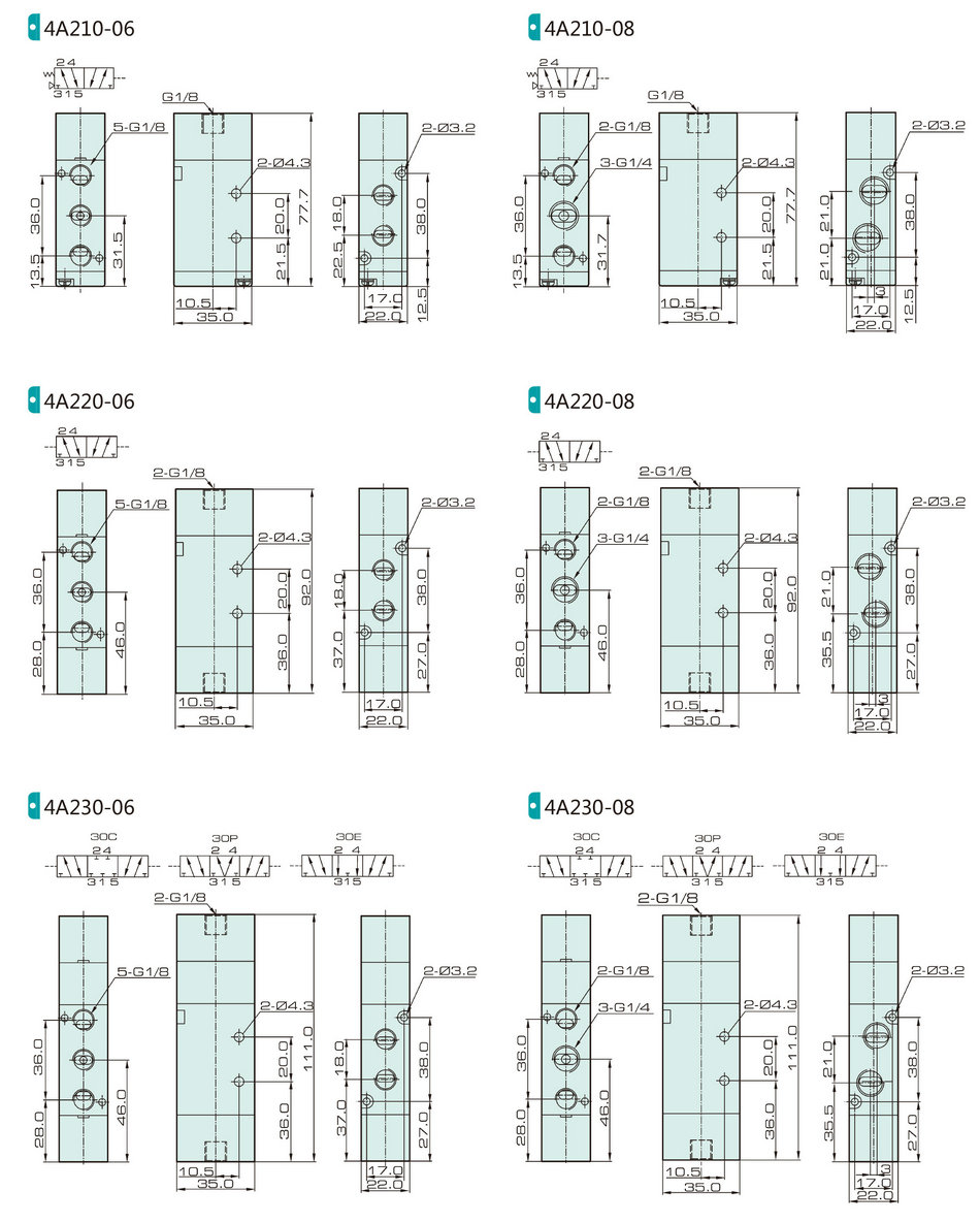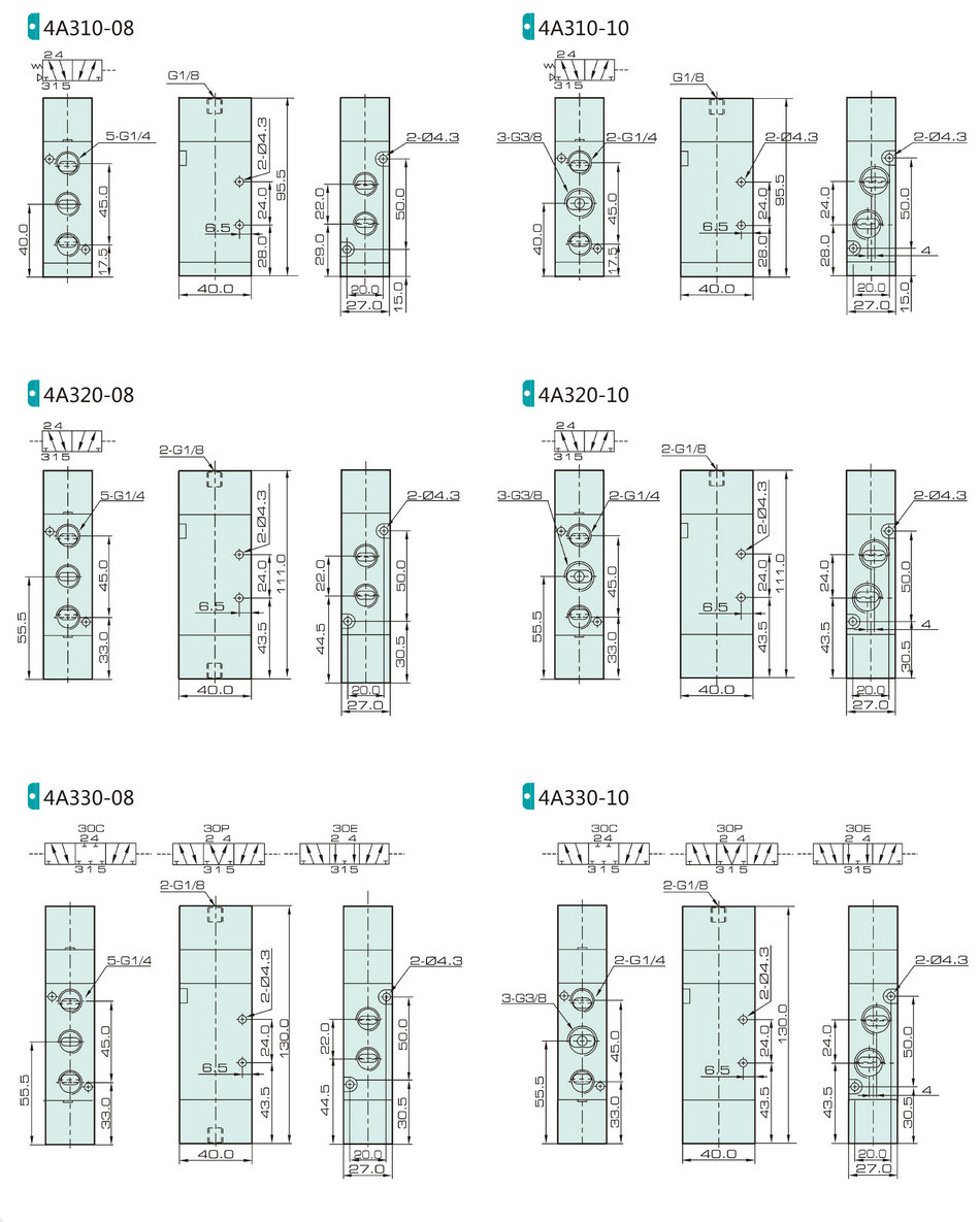 | 밸브 유형 | 5/2 웨이 | 5/3 웨이 | 5/2 웨이 | 5/3 웨이 | ||||||