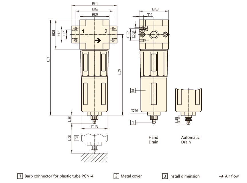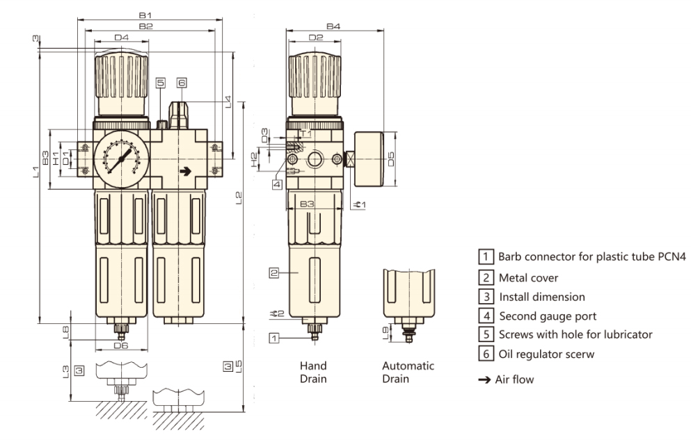 | 구조 기능 | 게이지가없는 필터 레귤레이터 | ||||||||