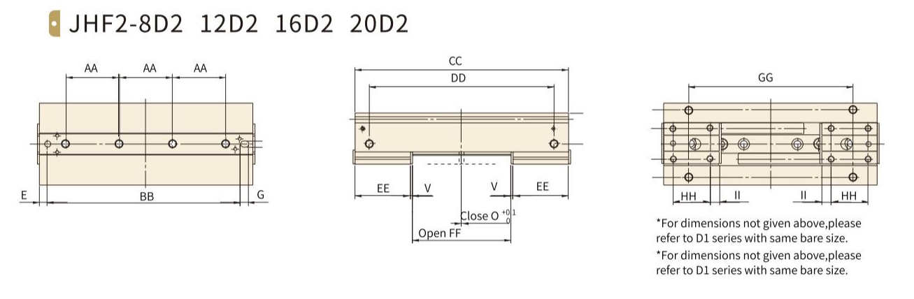| JHF2-12D | 26 | ∅3H9+0.025 0 | 3 | ∅3H9+0.030 0 | M4x0.7 | 10 | 4 | 42 | 4 | 40 | 20 | M5x0.8 | 208. | 7.7 | 19 | 25 | 52 | 38 | 5 |