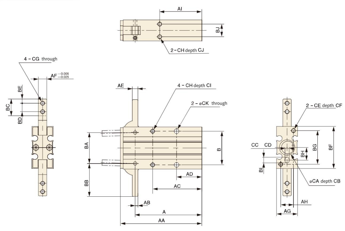 | 25 | M5×0.8 | 26+0.052 0 | 1.5 | 4+0.043 0 | 4 | M6×1 | 12 | M5×0.8 | M6×1 | 12 | 10 | 6.6 |