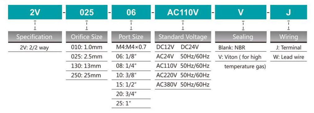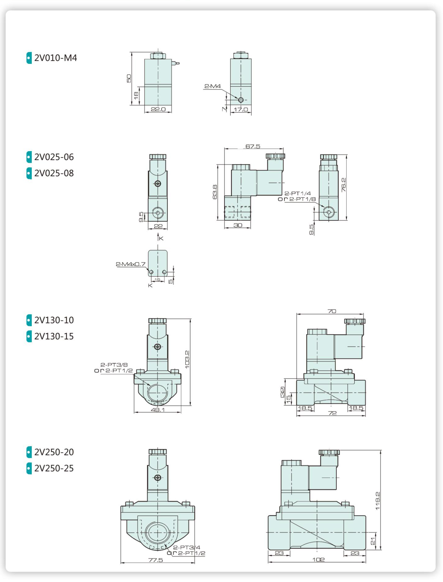 | 모델 | 2V010-M4 | 2V025-06 | 2V025-08 | 2V130-10 | 2V130-15 | 2V250-20 | 2V250-25 |
