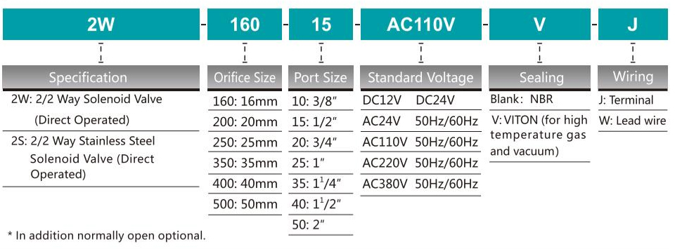 | 본체의 재료 | 2W : 황동 2S : 스테인리스 스틸 | ||||||