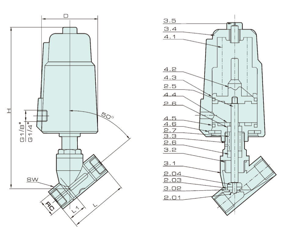| 2.01 볼트 | 3.1 밸브 본체 | 4.1 스프링 |