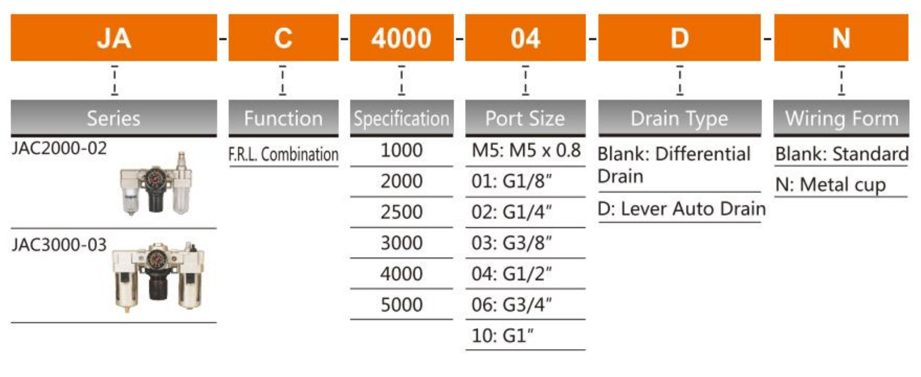| JAC3000 | 1/4-3/8 | 181 | 64 | 38 | 156.5 | 60.8 | 41 | 53 | 35 |