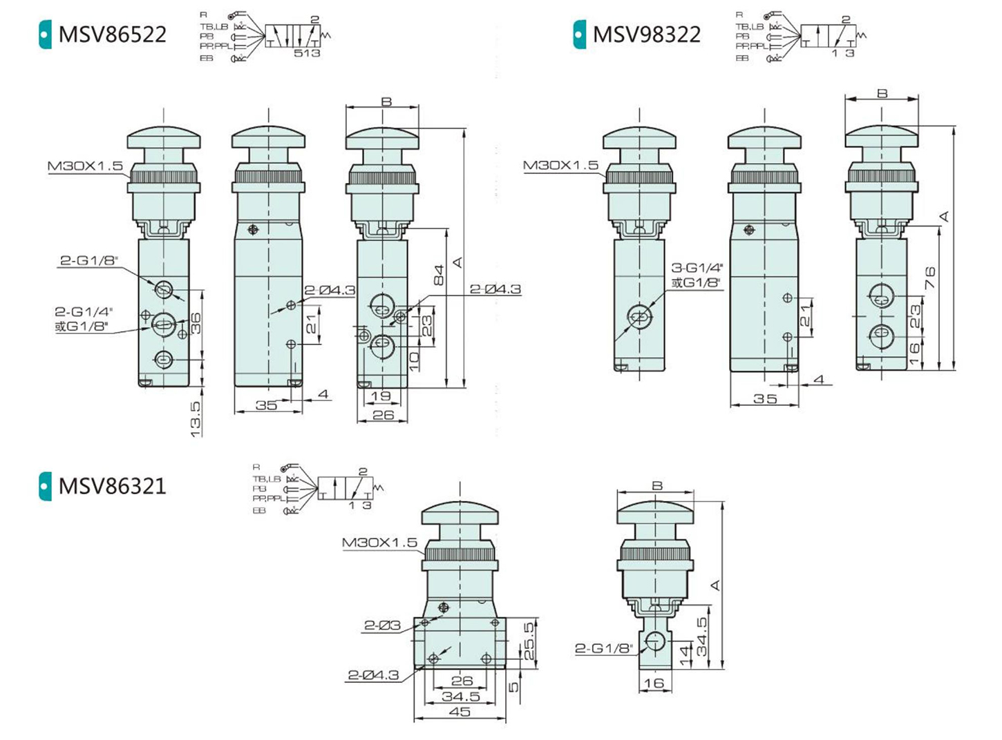 | 밸브 유형 | 3/2 웨이 | 5/2 웨이 | 3/2 웨이 |