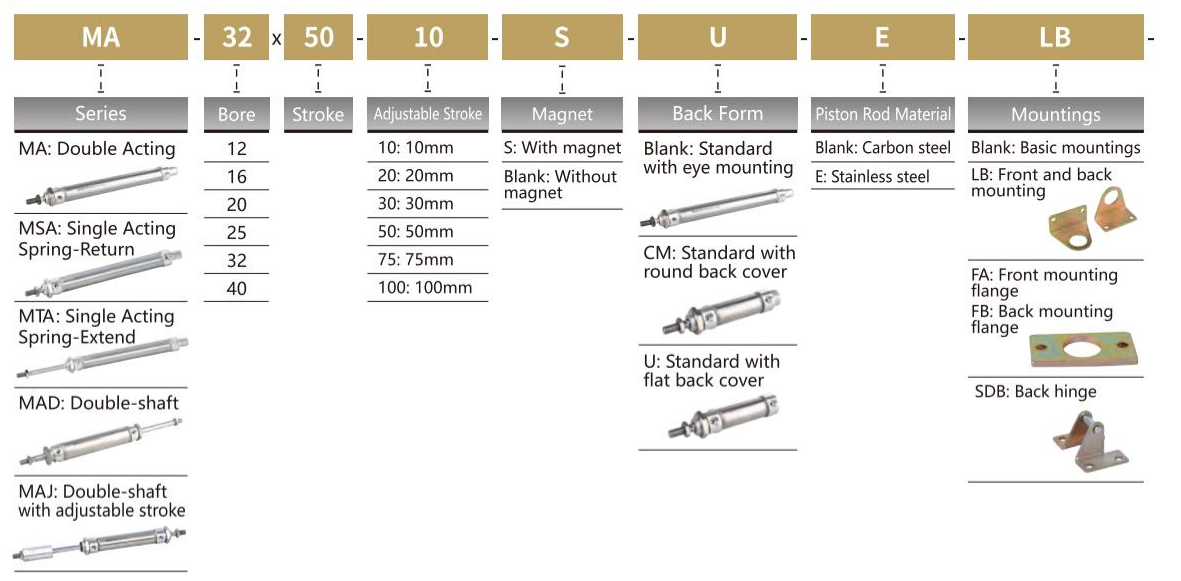 | MA/MAC | 16/20/25/32/40 | 15 20 25 30 40 50 60 75 80 100 125 150 160 175 200 250 275 300 | 500 |