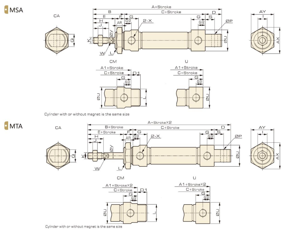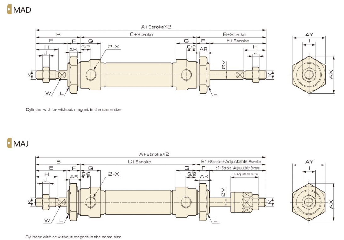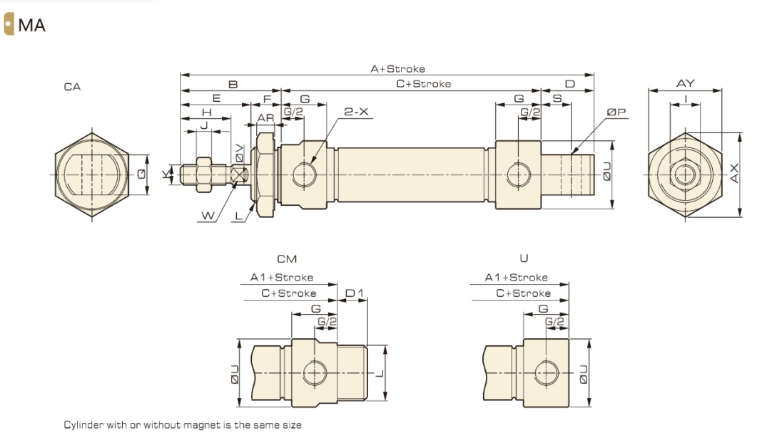 | 20 | 20 | 12 | 6 | M8×1.25 | M22×1.5 | 8 | 16 | 12 | 27 | 8 | 6 | G1/8 | 7 | 33.5 | 29 | |||||||||||