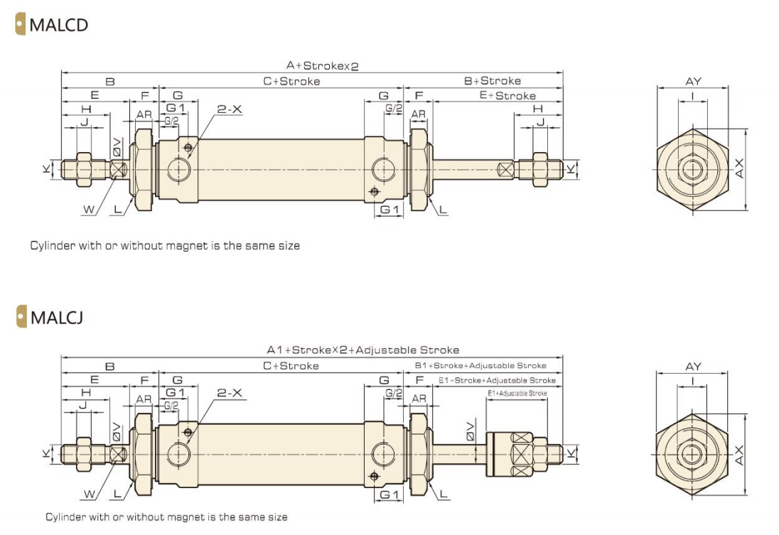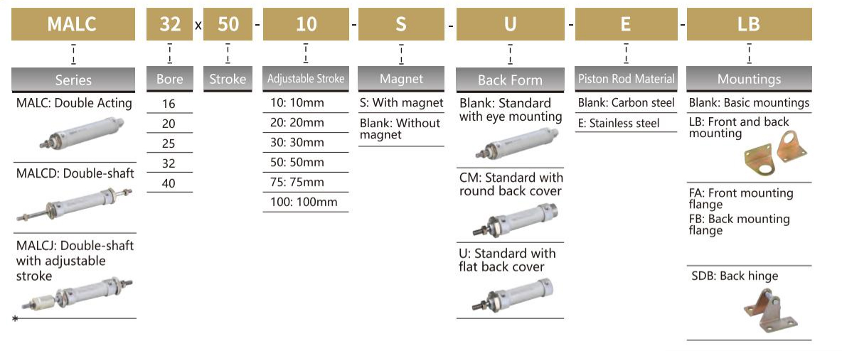 | MALCD/MALCJ | 16/20/25/32/40 | 15 20 25 30 40 50 60 75 80 100 125 150 160 175 200 250 275 300 | 300 |