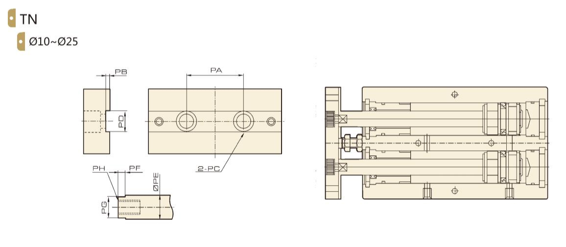 | 25 | 34 | 1 | 구멍을 통해 6.8mm 깊이 6.8mm : ∅4.5 | 10.2 | 12 | 3 | 10 | M6 × 1 깊이 48mm |