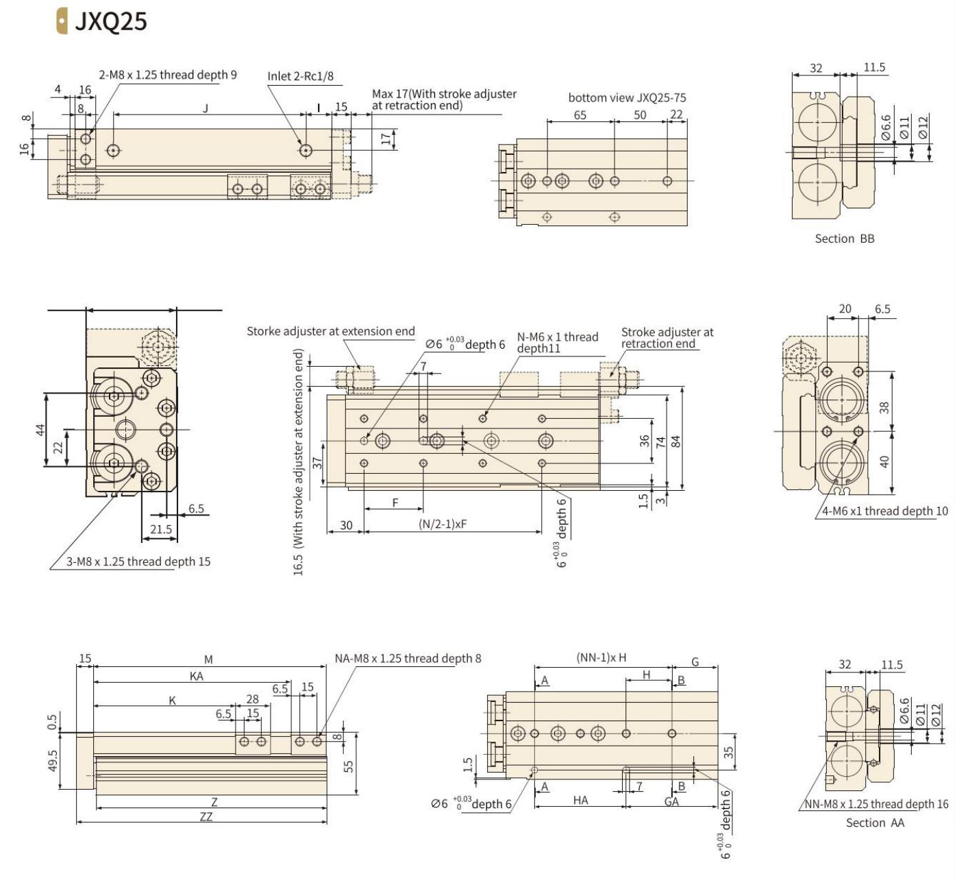 | JXQ25-75 | 60 | 6 | - | - | 3 | 72 | 65 | 31 | 100 | 101.5 | 136.5 | 8 | 166 | 164.5 | 182 |
