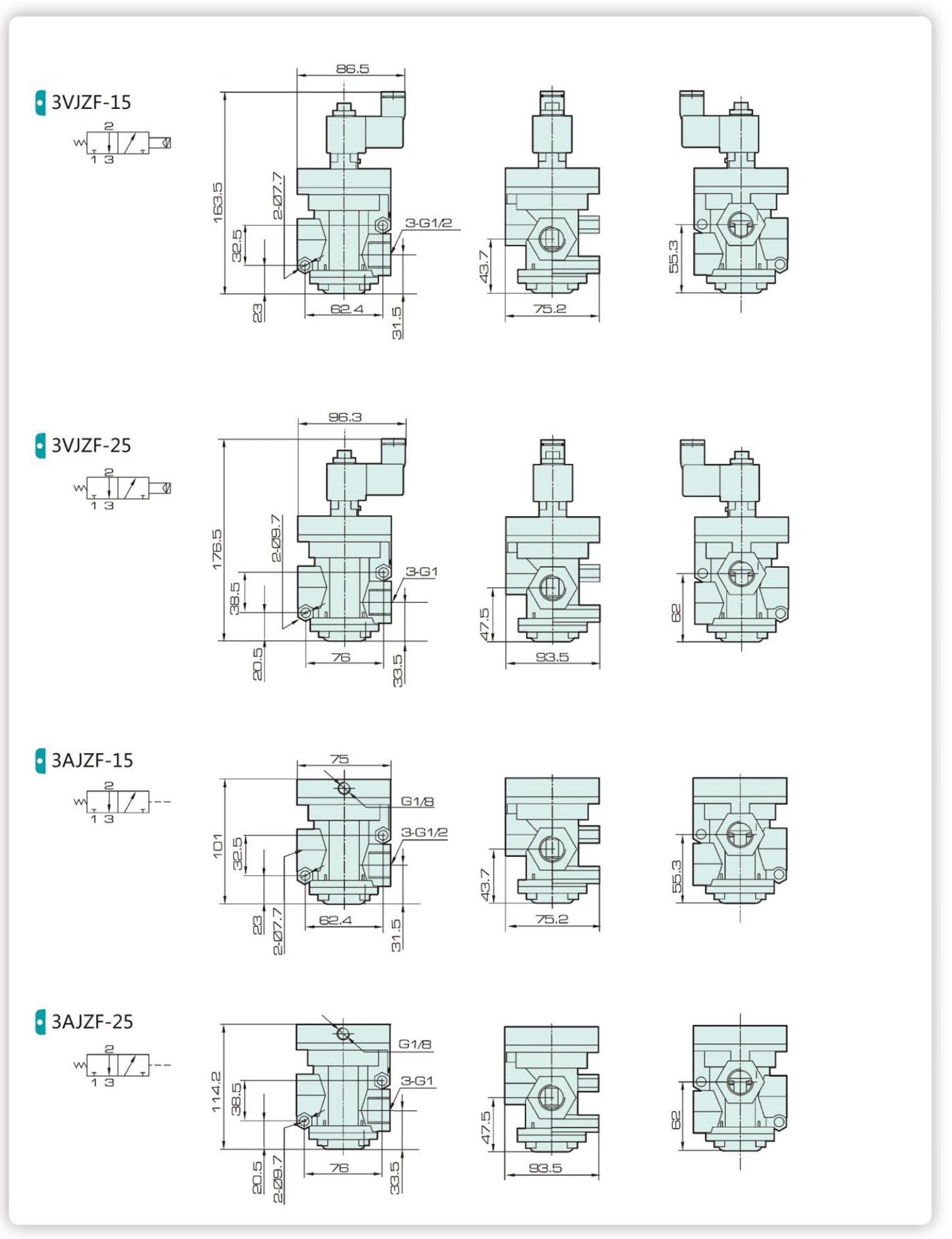 | 모델 | 3VJZF-15 | 3VJZF-25/20 | 3AJZF-15 | 3AJZF-25/20 |