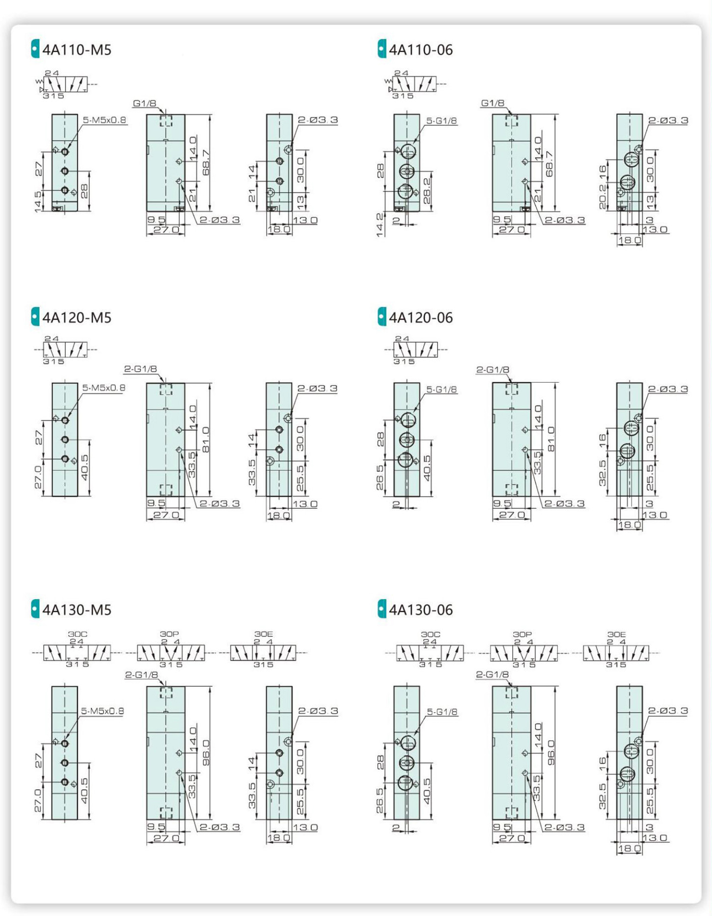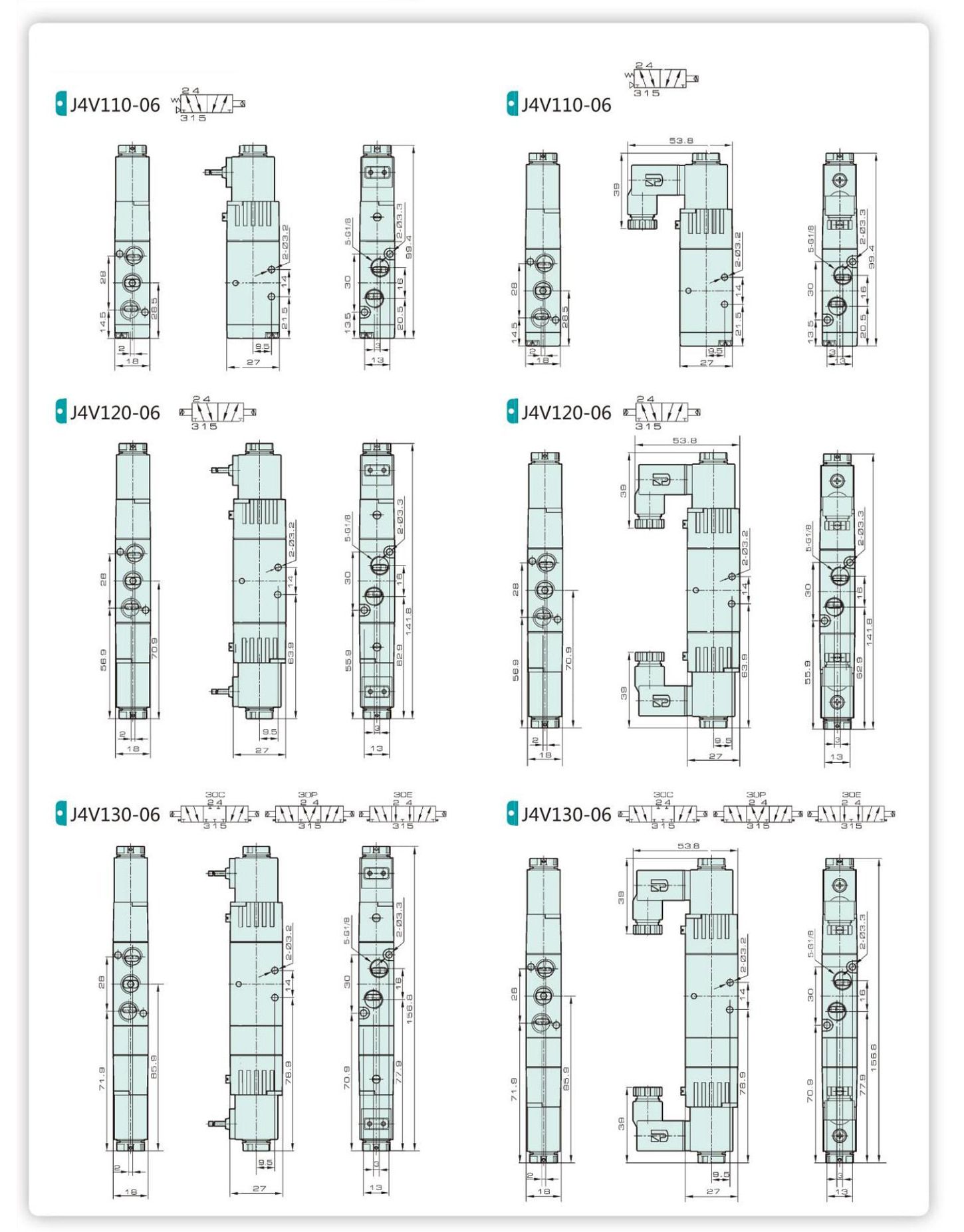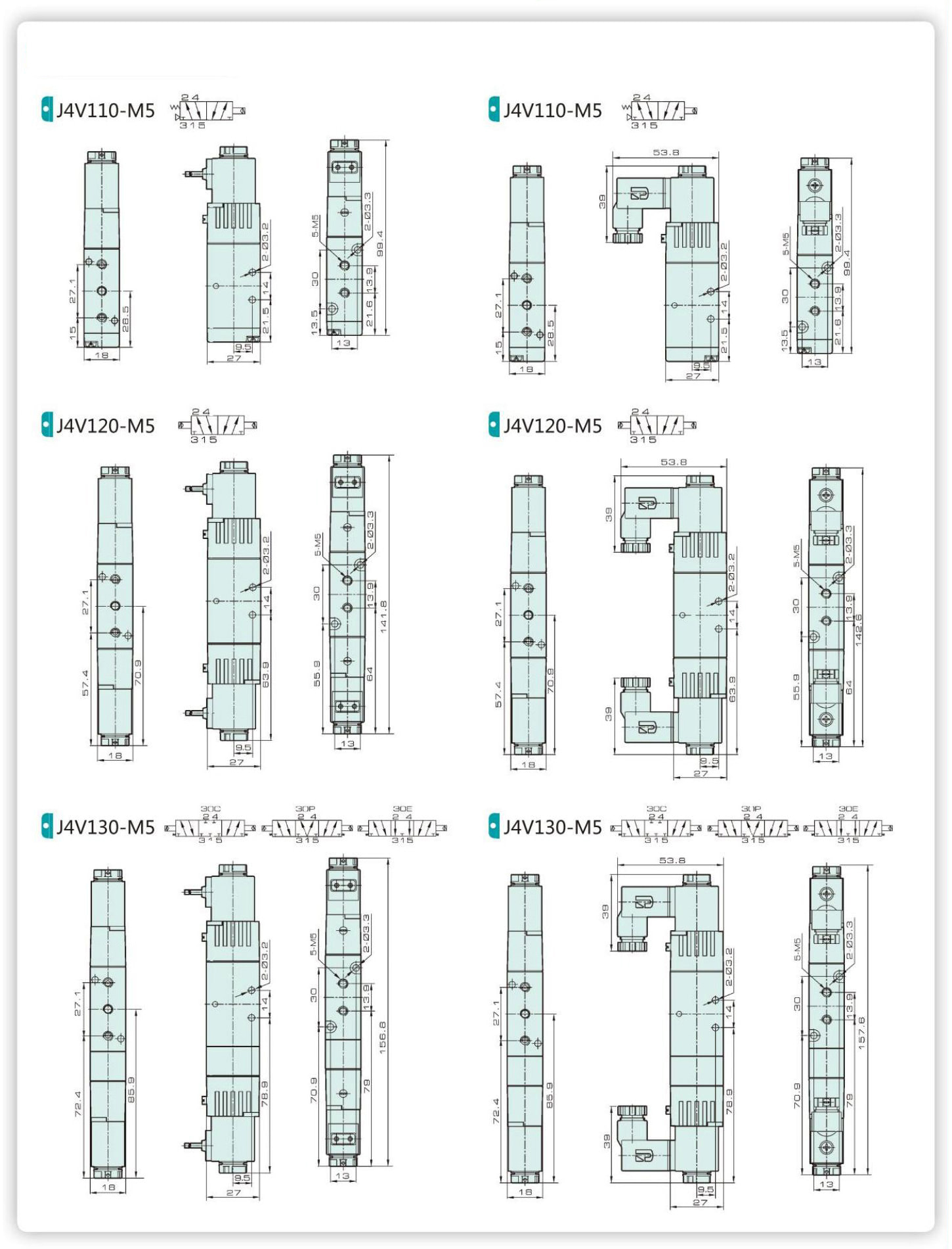 | 밸브 유형 | 5/2 웨이 | 5/3 웨이 | 5/2 웨이 | 5/3 웨이 | ||||||||||||