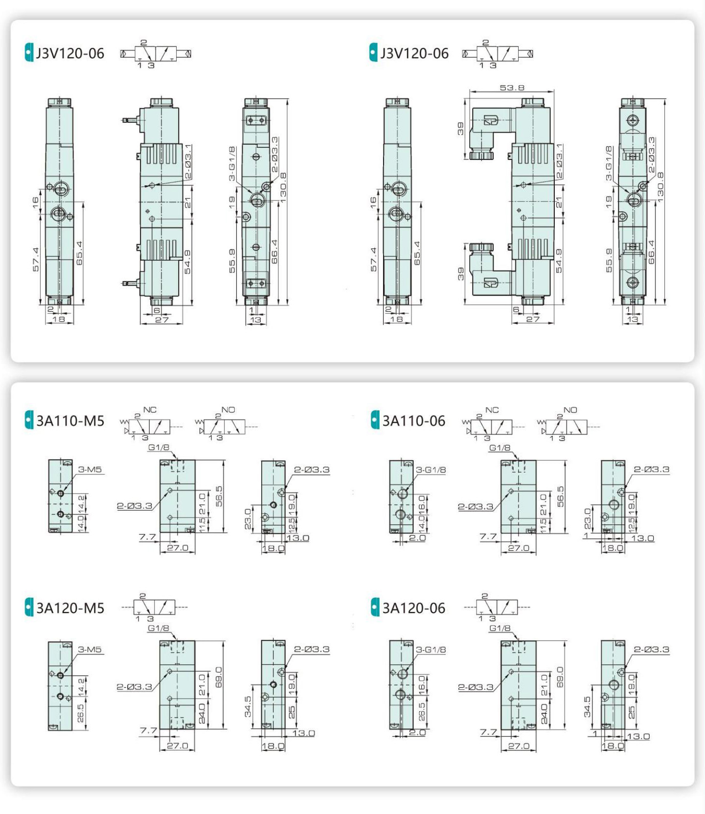 | 포트 크기 | 입구, 출구, 출구 포트 = M5 × 0.8 | 입구, 출구, 출구 포트 = G 1/8 " | ||||||||||||||