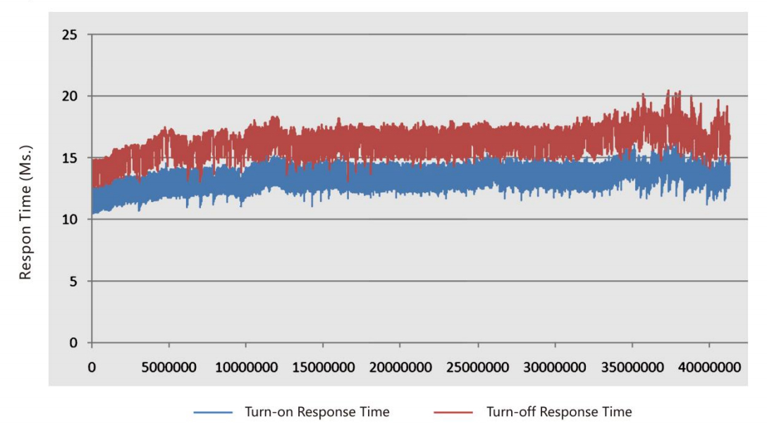 솔레노이드 밸브의 응답 시간은 4천만 번의 수명 테스트 후 약간의 차이가 있습니다.