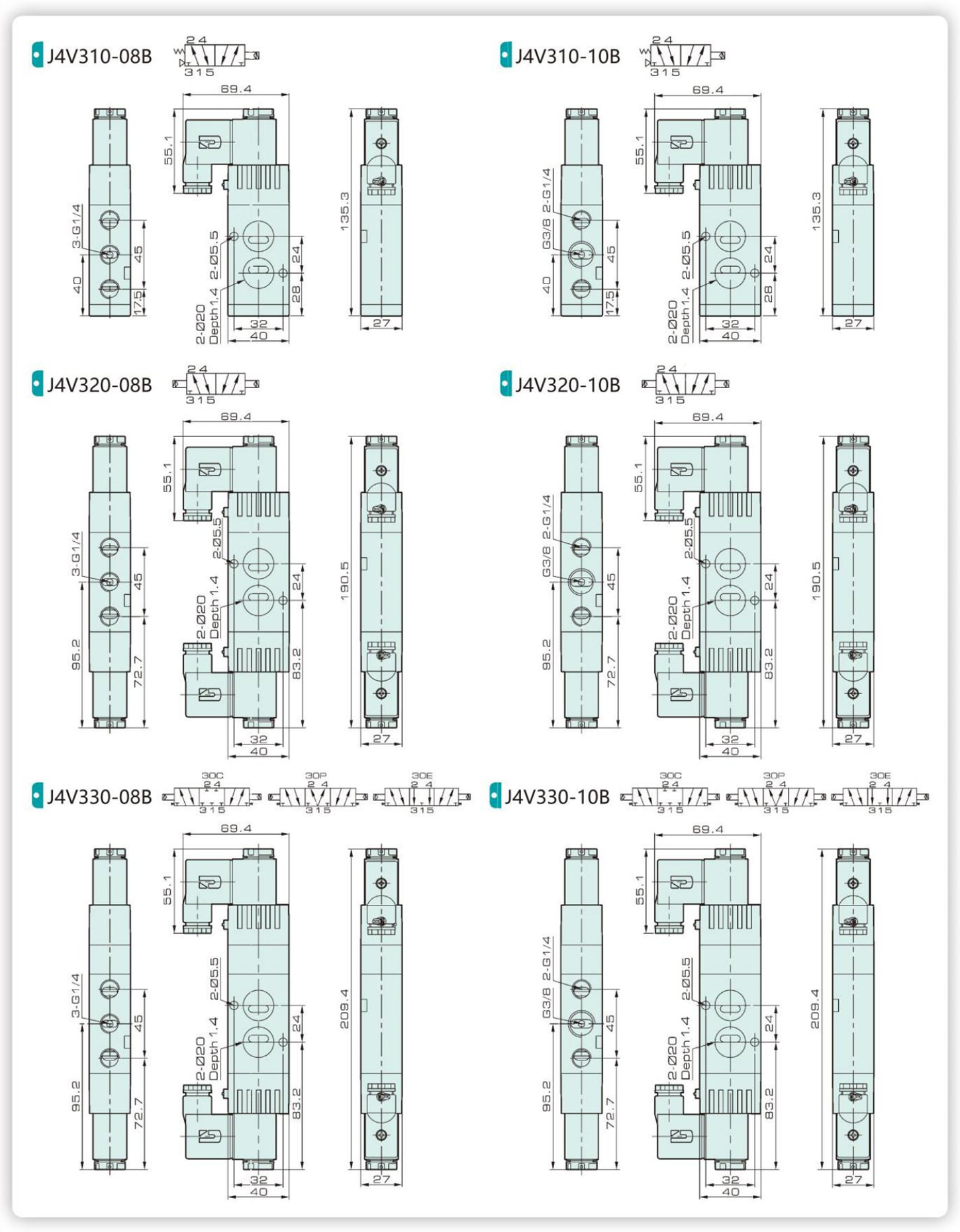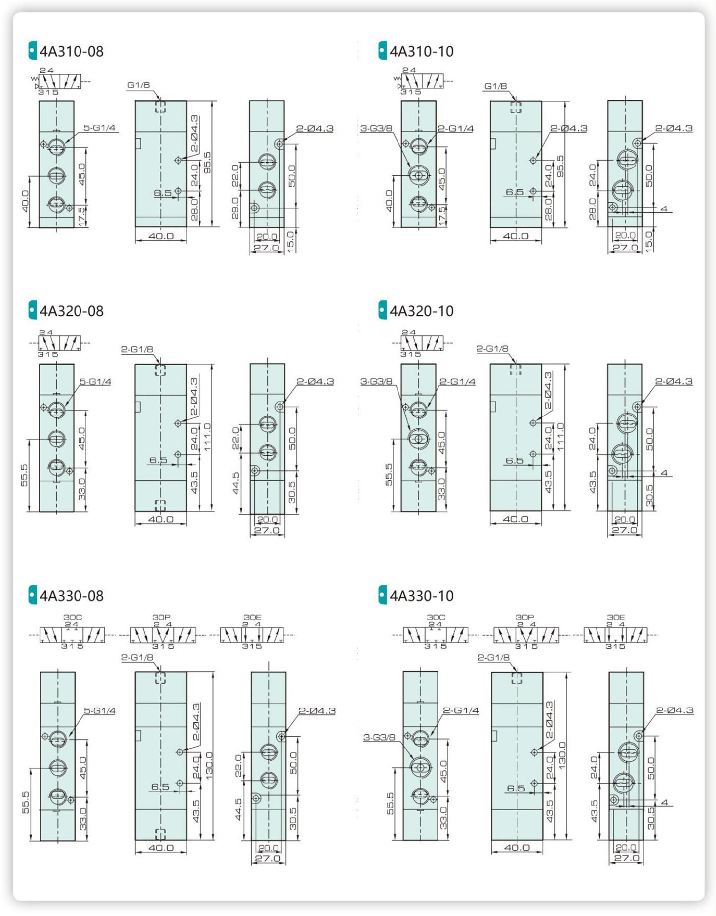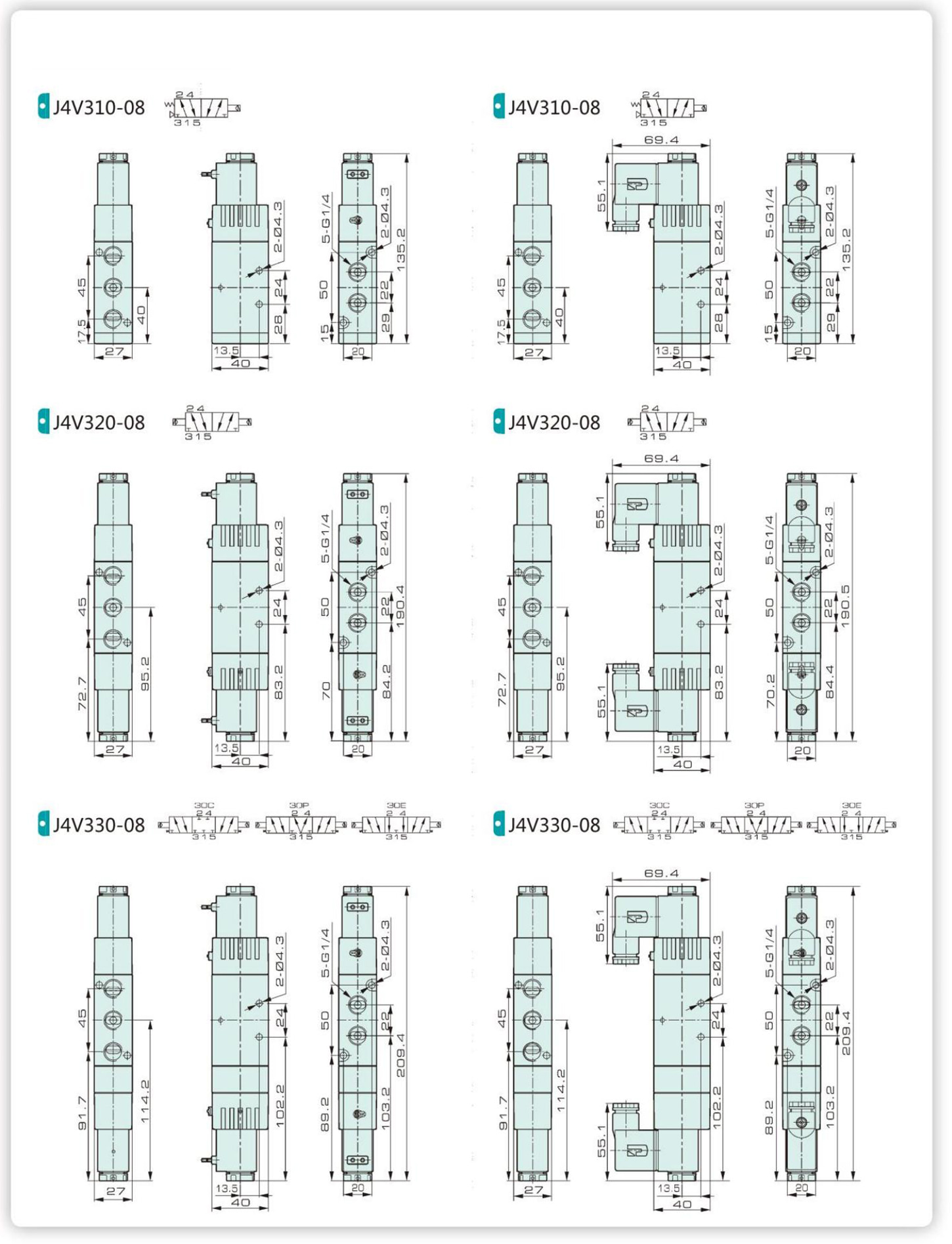 | 밸브 유형 | 5/2 웨이 | 5/3 웨이 | 5/2 웨이 | 5/3 웨이 | ||||||||||||