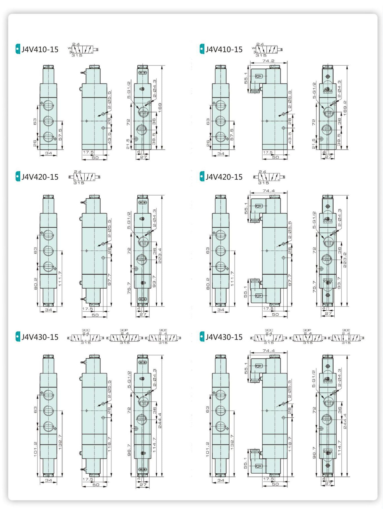 | 밸브 유형 | 5/2 웨이 | 5/3 웨이 | ||||||