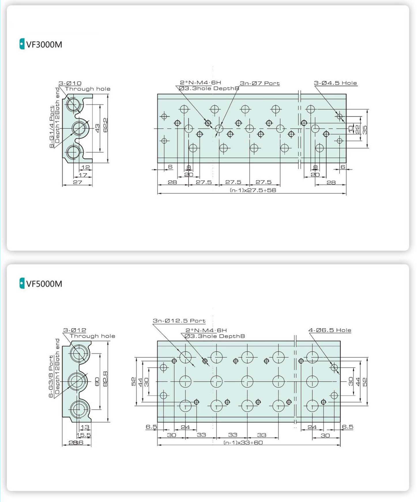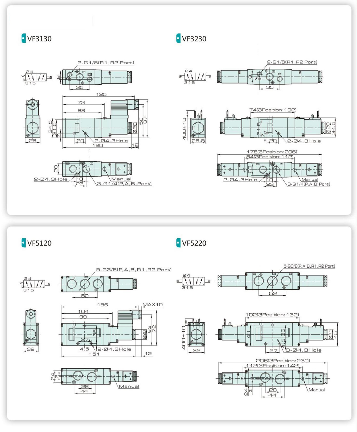 | 밸브 유형 | 5/2 웨이 | 5/3 웨이 | 5/2 웨이 | 5/3 웨이 | ||
