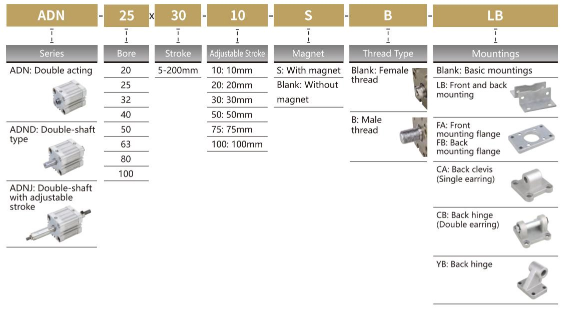 | TADN | 20/25/32/40/50/63/80 | 5 10 15 20 25 30 35 40 45 50 55 60 65 70 75 80 90 100 | 100 |