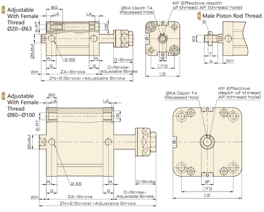 2. 소형 구조, 다양한 종류의 다양한 유형 및 광범위한 응용 분야의 ADN 시리즈 실린더.