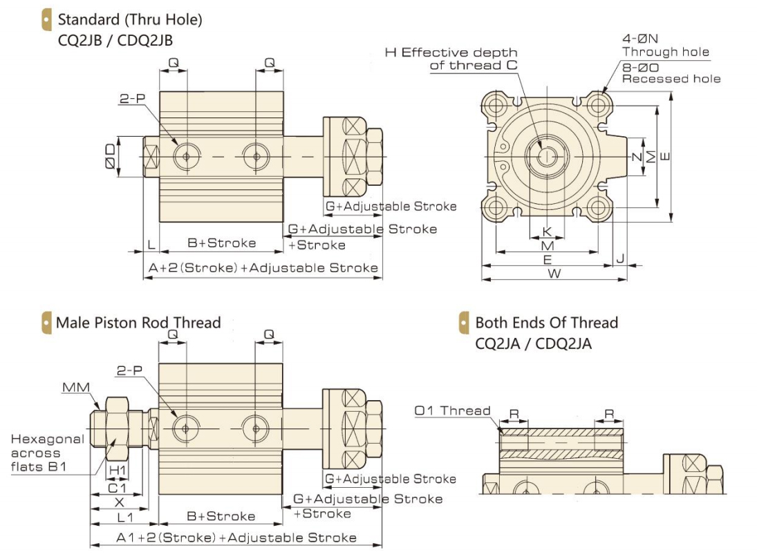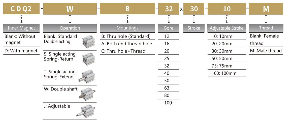 | CQ2/TCQ2 | 32/40/50/63/80/100 | 5 10 15 20 25 30 35 40 45 50 55 60 65 70 75 80 90 100 | 100 | |